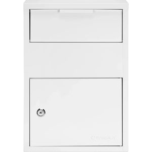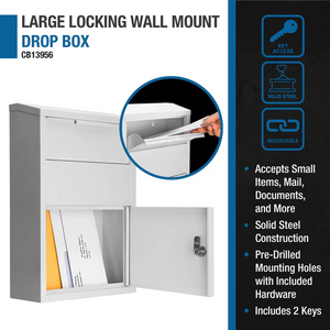 CLICK HERE to watch our video on “What to Do When Your Safe Arrives.”The Barska CB13956 Large Locking Wall Mount Drop Box offers a secure and versatile solution for depositing various items. Its drawer-style drop slot easily accepts everything from small handheld items to letters, keys, key cards, cash, checks, and documents up to 2" thick. The simple yet functional design is ideal for offices, businesses, or homes where quick deposits are needed.