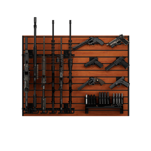 • The panels, racks, and accessories in this package are fully customizable, allowing you to position the holders to your preferred gun display setup.