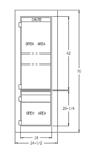 The AMSEC 8665429 TL-30 Double Door Depository Safe works by having two compartments. The top compartment is large enough to store your tills. It is 42.00" high by 18.00" wide by 13.63" deep. It has two adjustable shelves inside to help with organization. Depending on the size of your tills, you can fit between 10-12 tills inside. The bottom compartment features a drop chute where you can deposit your cash bags at the end of a shift. The drop chute is 3" x 18" and has a hinged anti-fish baffle to prevent someone from fishing out your deposits. The inside compartment is 20.25" high by 18.00" wide by 16.75" deep and is large enough for many bank bags.