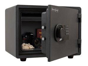 This AMSEC FS914E5LP Fire Safe is perfect for storing important documents in your residence and keeping them safe from a fire. With its U.L. one hour fire rating, this residential fire safe is perfect for any home. The door is 5/8" thick and has a handle operated side, top, and bottom locking mechanism incorporating (2) 1/2" chrome plated locking bolts. Not only that but two deadbolts prevent the door removal if the hinges are removed during a forced entry attempt.