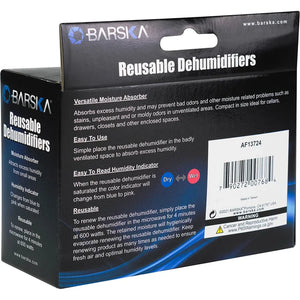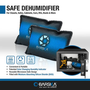 CLICK HERE to watch our video on “What to Do When Your Safe Arrives.”Protect your valuables from the damaging effects of excess moisture with the Barska AF12500 Reusable Safe Dehumidifier. Designed for smart, efficient performance, these compact dehumidifiers are an essential accessory for any safe, closet, or enclosed storage space. Each unit actively absorbs moisture to help prevent mold, mildew, corrosion, and degradation, making it ideal for preserving sensitive items like photographs, electronics, firearms, ammunition, currency, and documents.