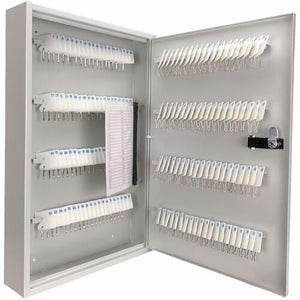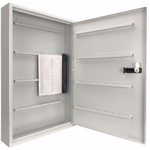 The Barska CB13602 160 Keys Lock Box with Combination Lock can hold up to 160 key hooks. There is a log sheet to keep track of each key. The white tags help with the organization of the keys.