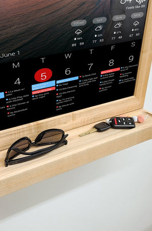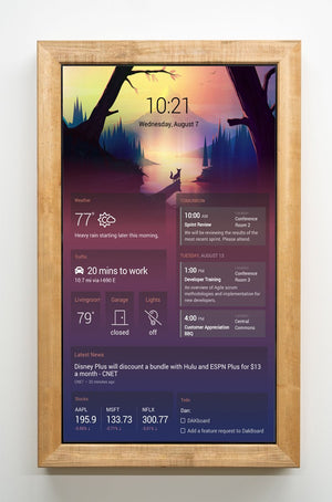 The Screen’s “business end” consists of a 32” (diagonal) IPS high definition computer monitor with 1920X1080 resolution, coupled with its brains — a Raspberry Pi computer connected to the DAKBoard display board cloud service. We considered going with a homemade configuration, but the DAK product is so much easier for customers to use and well-supported. Just connect it to your wifi network, log in and either use one of many templated layouts or create your own completely custom and unique configuration of all your content DAKBoard uses a simple drag and drop, resizable block framework (options beyond a basic template are available with an inexpensive, optional subscription service). This video shows the initial screen setup and configuration. In short — zero maintenance but 100% customizable — the BlumSafe way.