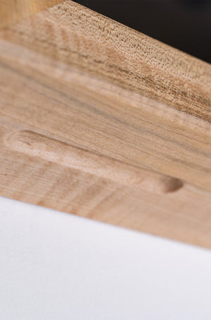 It is made from solid wood – maple, oak, or walnut stock finishes, either stained or painted black or white.