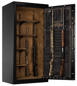 The Browning RW33 Rawhide Standard Gun Safe is the perfect size for most households. It has outside dimensions of 60.00" high by 30.00" wide by 24.50" deep. That should be plenty of room to store what you need. It is designed to accommodate rifles and shotguns plus have room for shelves to hold personal documents, jewelry, and other valuables. The security features include an 11-gauge steel body. Most gun safes on the market are 12 gauge or even thinner.
