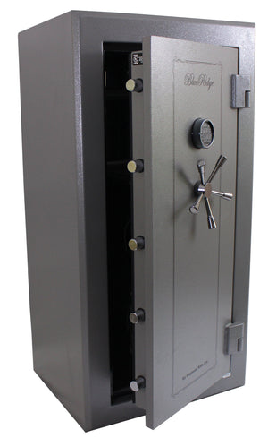 The BR-5930 BlueRidge by Hayman Safe Gun & Rifle Safe is a top-of-the-line gun safe with many great features. The steel thickness is a full 1/4" solid steel plate on the door with heavy duty hinges to make it swing smoothly. The body features a continuous sheet of 11 gauge steel which is bent, folded, and shaped to give a much stronger welded steel metal. Other security features include drill restive hard plate and spring loaded re-lockers. There are (10) 1-1/2" diameter bolts locking the door on all 4 sides with active bolts on the top, bottom, and the leading edge. Deadbolts lock the hinge side to give it total protection from pry attacks.