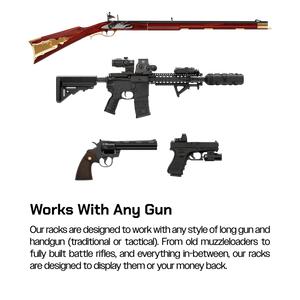 This display is a perfect addition to any vault room, armory, sales floor, or man cave. You'll get American quality and the large selection of finishes helps it fit into any rooms decor. It's time to get your guns out of the way, but not out of sight or mind with the HD109 from Hold Up Displays