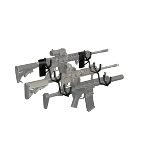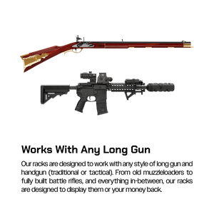 • This gun rack allows gun owners to show off the side profile of their long guns while also maximizing space on their gun wall.