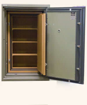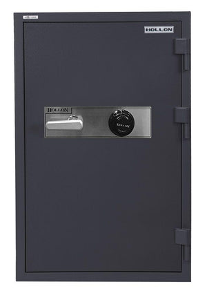 The Hollon HDS-1000C Data Safe features a KIS Data/Media fire test of 1832 degrees F on the outside and 125 degrees F on the interior for one hour. This means the inside temperature never exceeded 125 degrees F. It has two removable shelves and an S&G Dial Combination Lock. The taller height of the safe allows for plenty of room to store your media and documents.