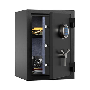 Constructed with anti-theft solid steel and 16mm heat-resistant fire boards, this safe meets the UL 72 standard for fire resistance, offering 30 minutes of fire resistance at outside temperatures up to 1200 degrees F.