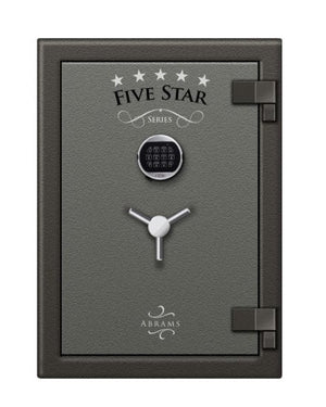 The SafeandVaultStore Abrams Five Star is our line of burglar fire safes for home or business use. This 2.20 cubic foot safe offers plenty of room for valuables, jewelry, paper and cash to protect from both the threat of a fire and a burglary. Featuring an independent fire rating of 1 hour and internal protection of 350 degrees F, this safe will meet or exceed your expectations. The door thickness on the Abrams is 4" and also has an anti-pry bar for additional security. There are also live locking bolts to prevent pry attacks. It is highly recommended that you use the four anchor holes provided to bolt this safe to a solid surface. This safe comes standard with a Lagard Basic Digital Lock. A Multi-User Digital Lock or Mechanical Lock is available as an upgrade.