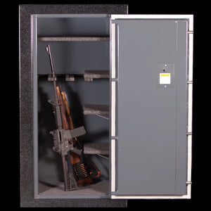 CLICK HERE to watch our video on “What to Do When Your Safe Arrives.”When you're serious about protecting your firearms, the Sturdy Safe Model 3224 delivers American-made quality that surpasses mass-produced imports. This isn't just another gun safe, it's a fortress built with their "Most Popular Package" featuring a massive 3/8" thick door, 4-gauge steel body, and an 8"x12" stainless steel hardplate around the dial that laughs at drill attempts. At 60" tall, this safe gives your long guns the respect they deserve while the spacious 32" x 24" footprint maximizes storage without dominating your room. The new semi-gloss dark gray and black textured finish isn't just about looks; the speckling pattern hides fingerprints and makes touch-ups invisible, keeping your safe looking sharp for decades.