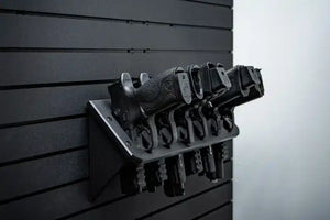 The Tactical Walls MWMPH ModWall Multi-Pistol Hangers are designed for the ModWall Panels. It is designed to hold (5) pistols in a vertical direction. The Multi-Pistol Hangers are 11" W x 5" D.